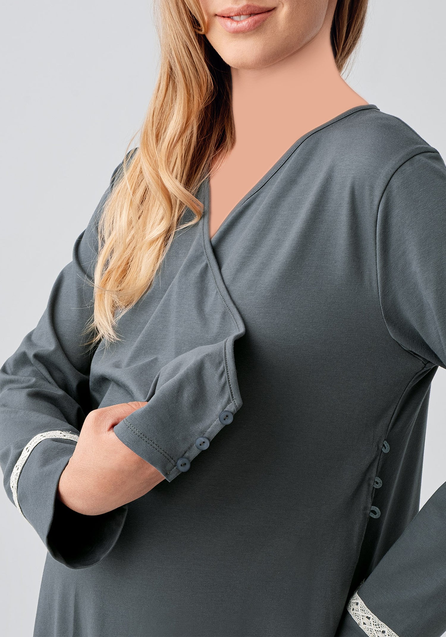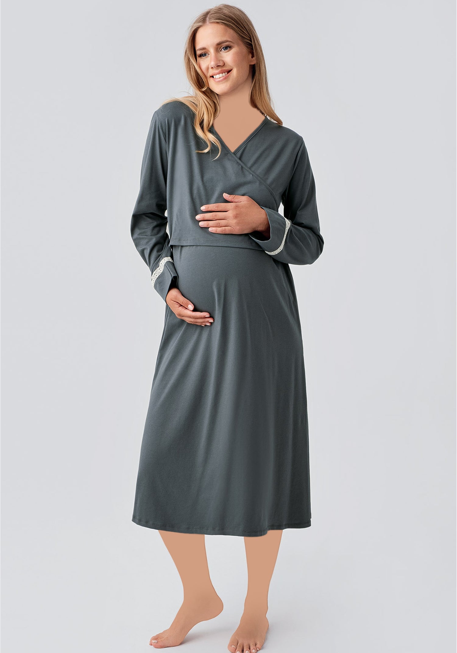 Maternal 2 Pieces Cotton Lycra Long Robe And Nighty Set