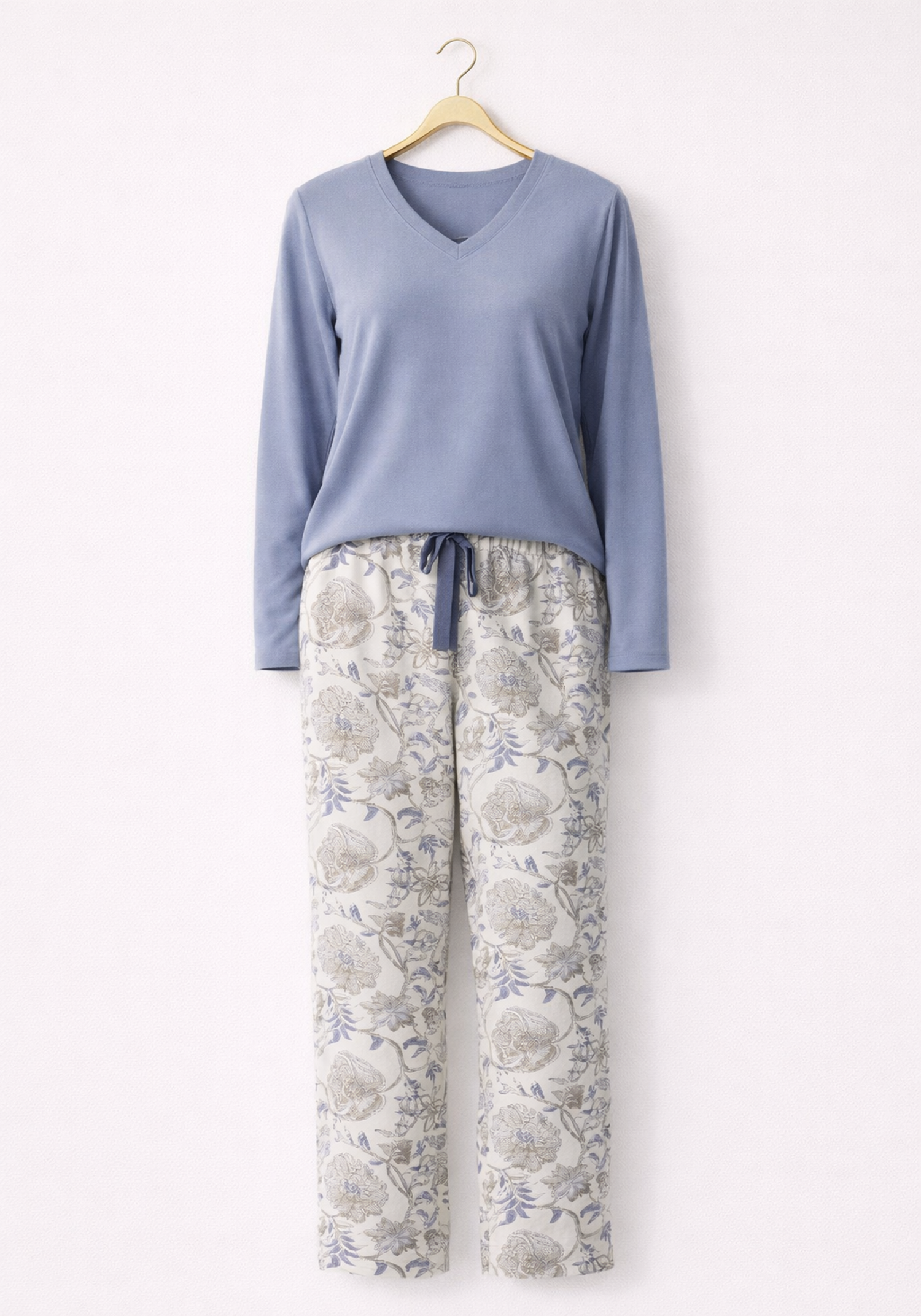 Long Sleeve Pajamas (Plain Top Pes Vis Els, Printed Pants Vis Pes)