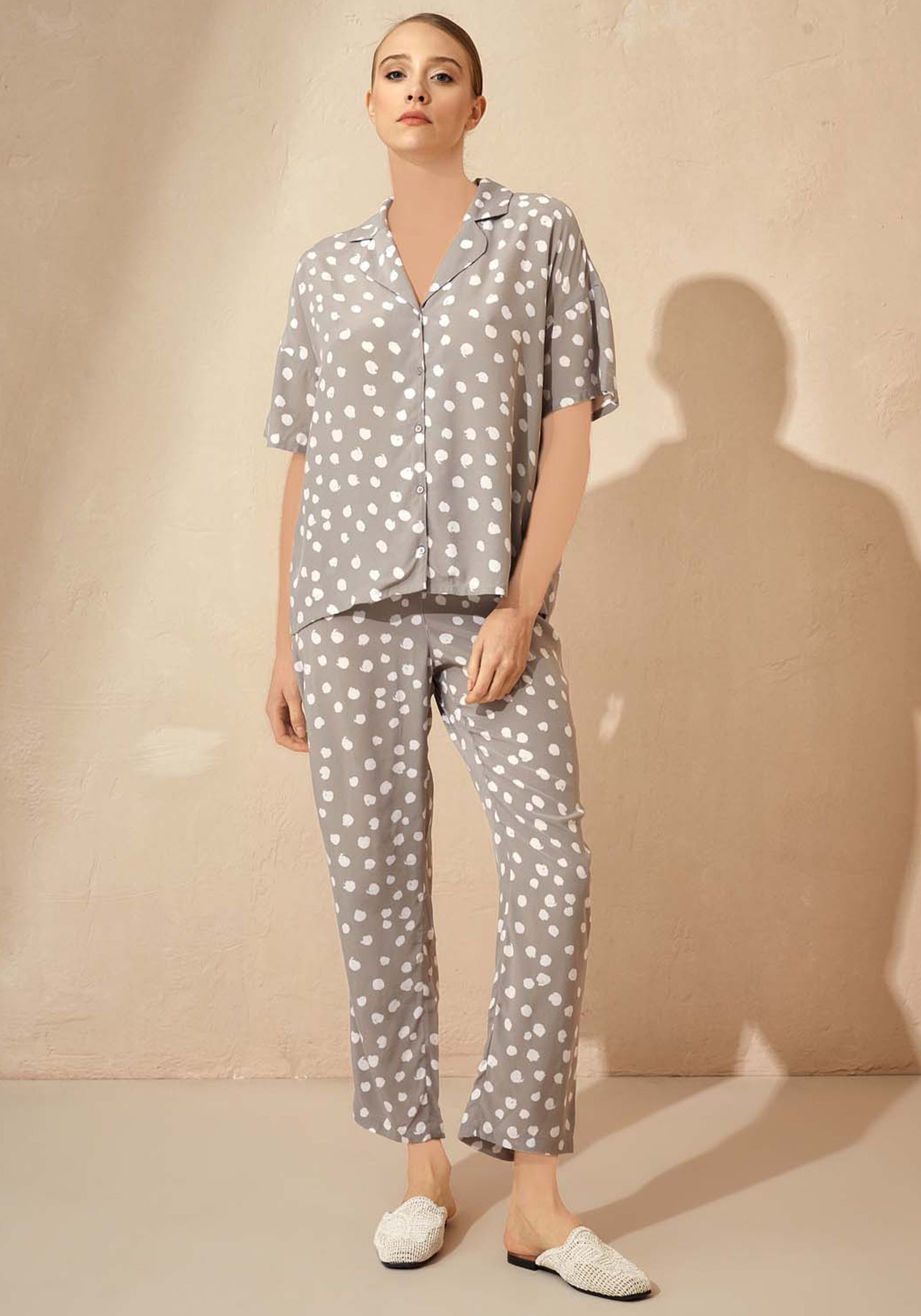بيجامة S&L ذات الياقة النباتية والأزرار