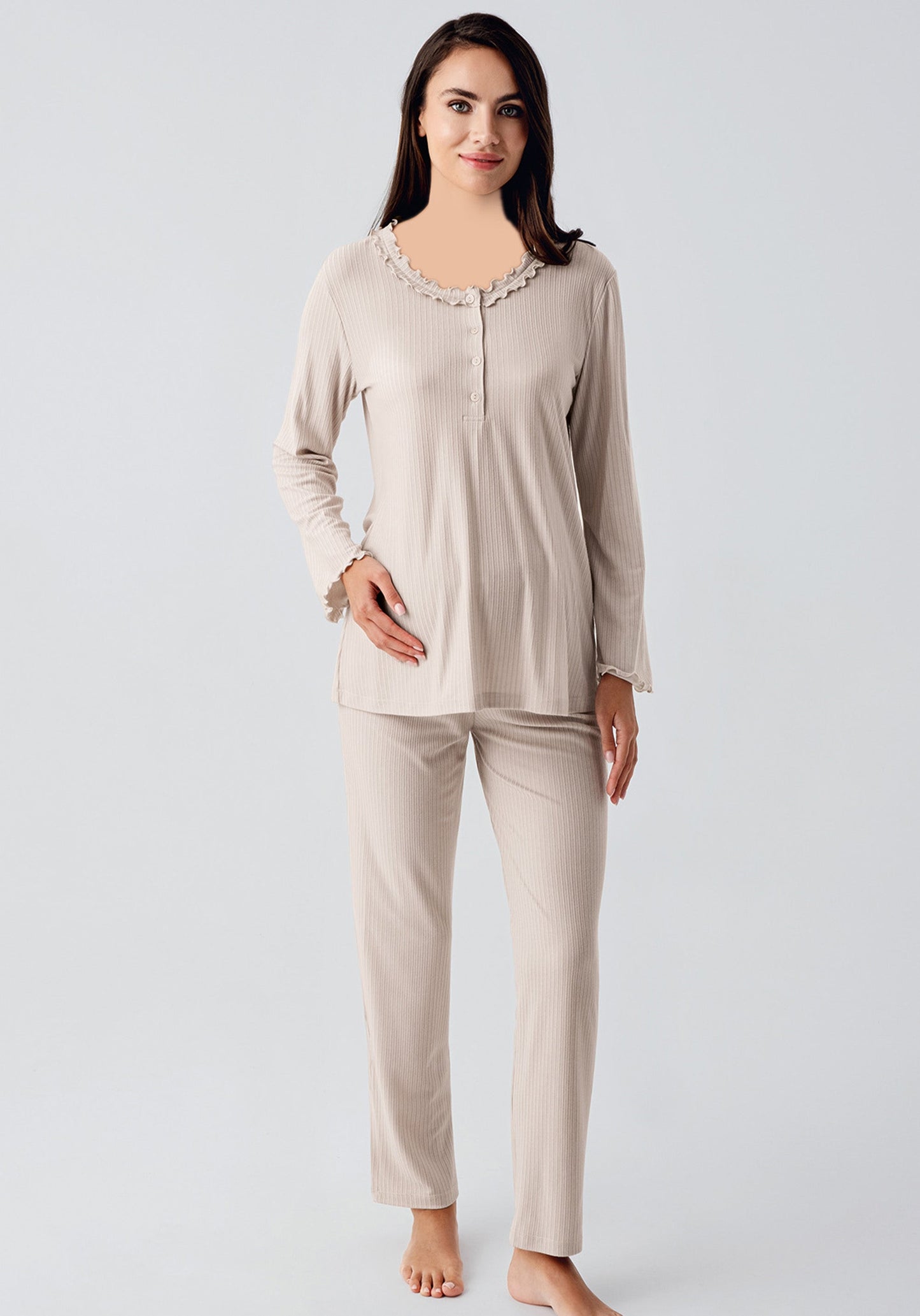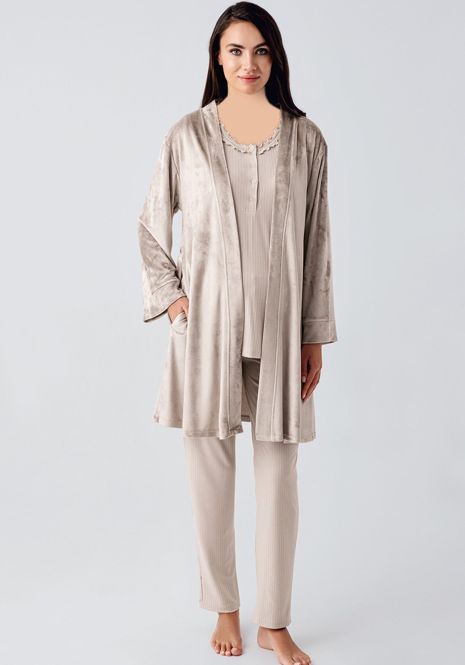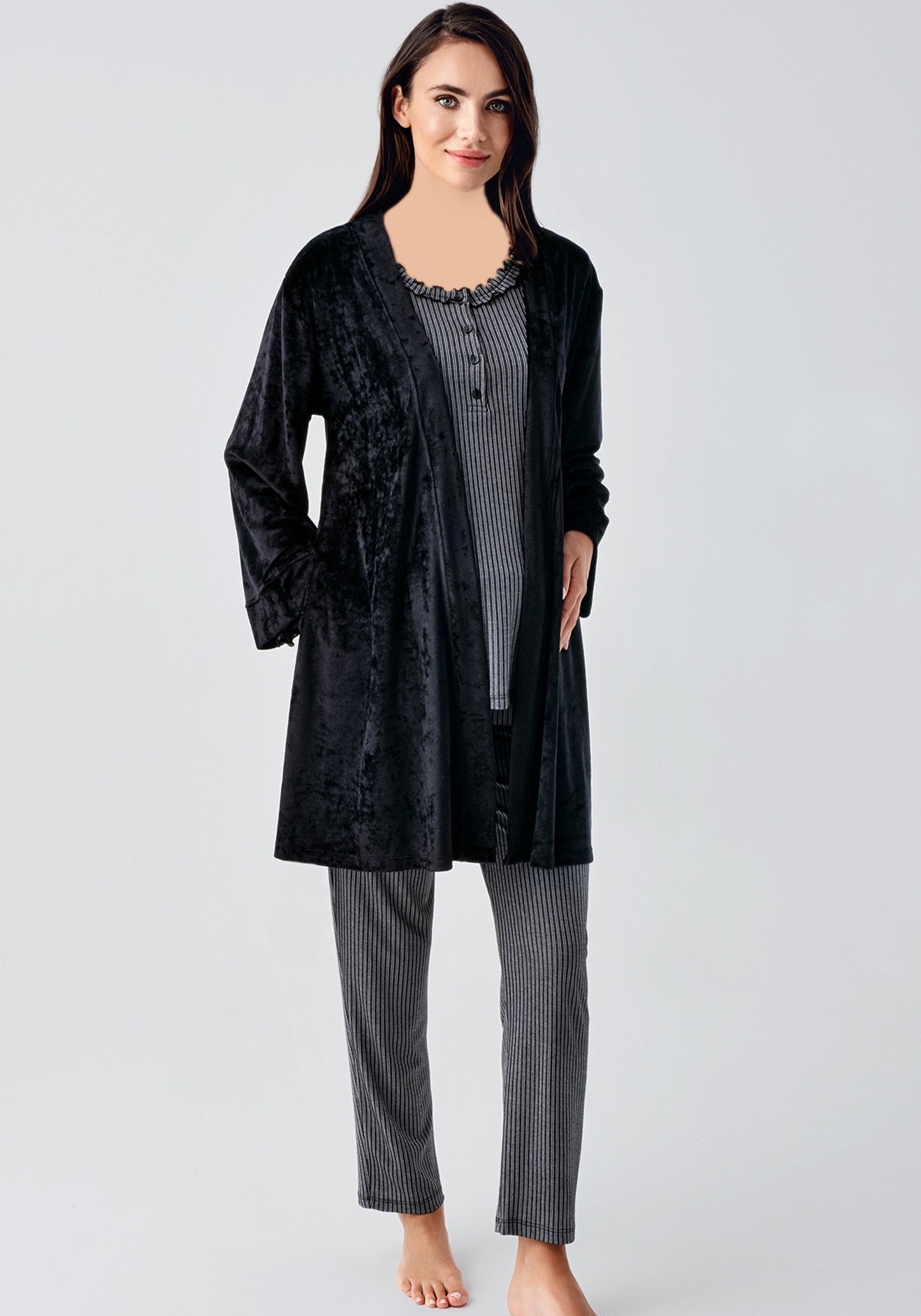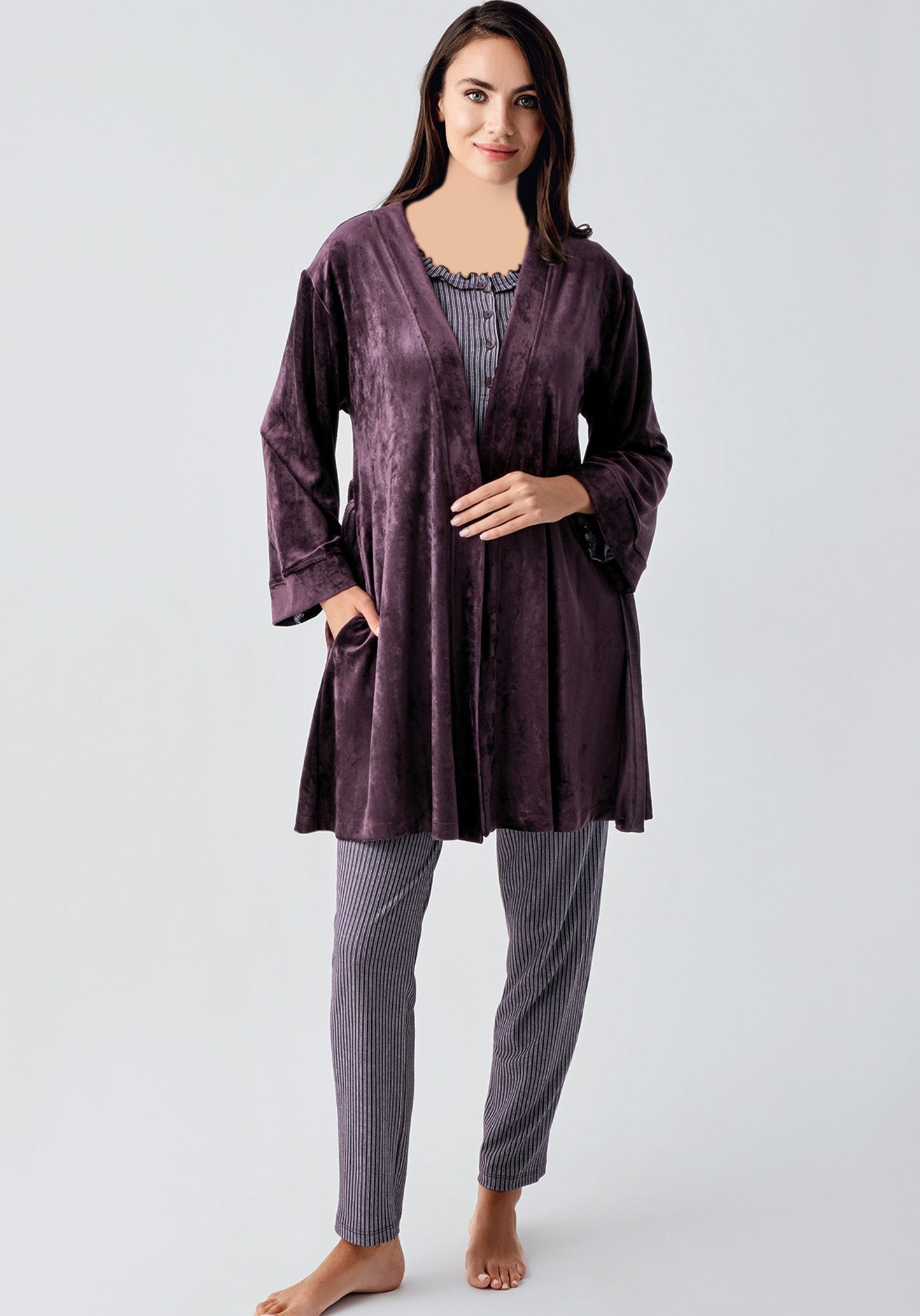 طقم بيجامة مخملية للأمومة مكون من 3 قطع