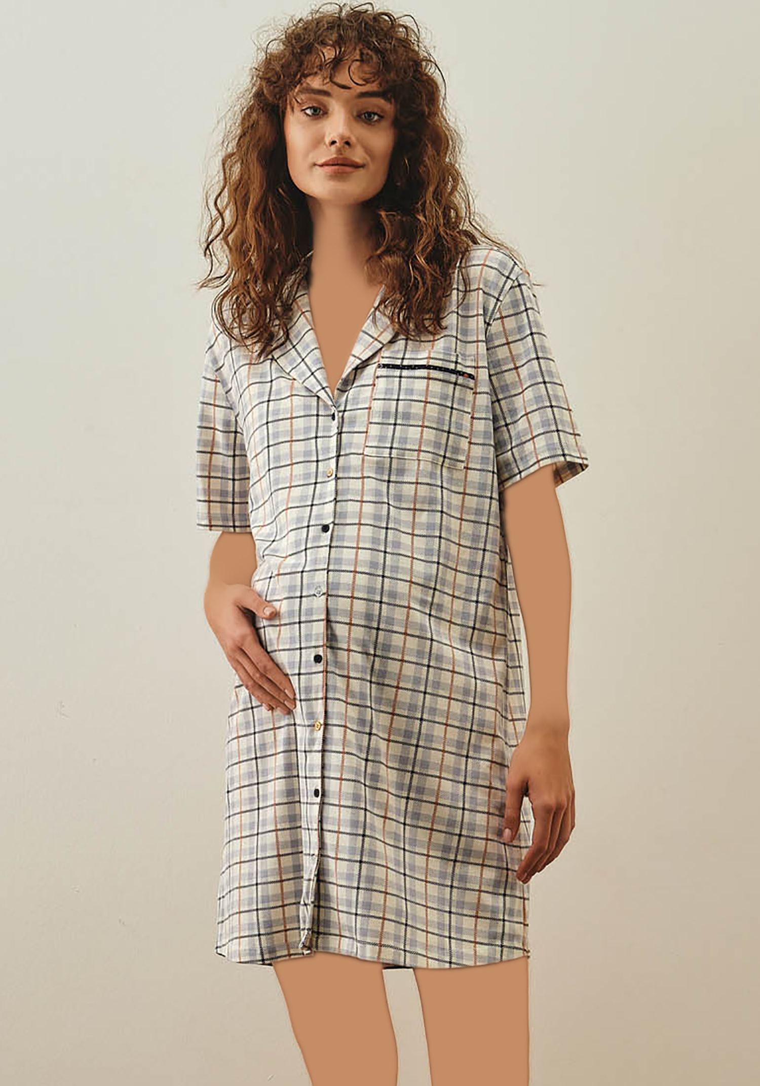 فستان قصير بأكمام قصيرة وياقة وأزرار من S&L