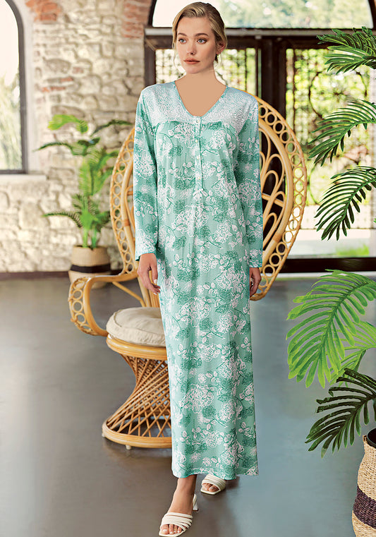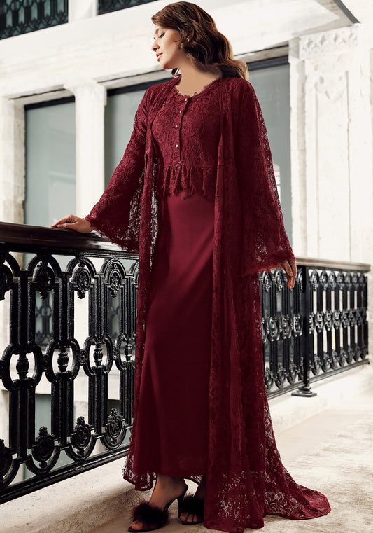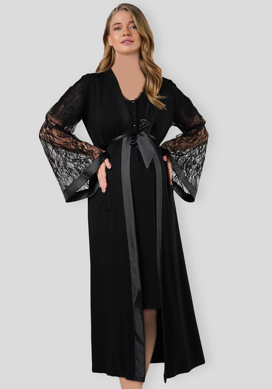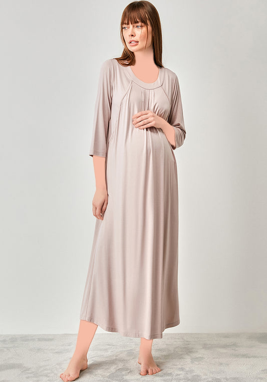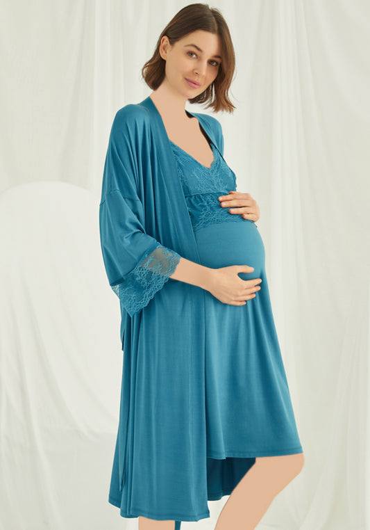 Maternal 2 Pieces Viscose Lycra Long Robe And Nighty Set