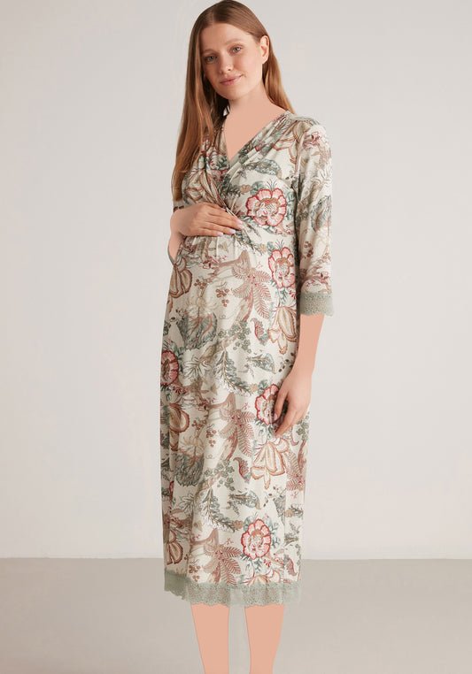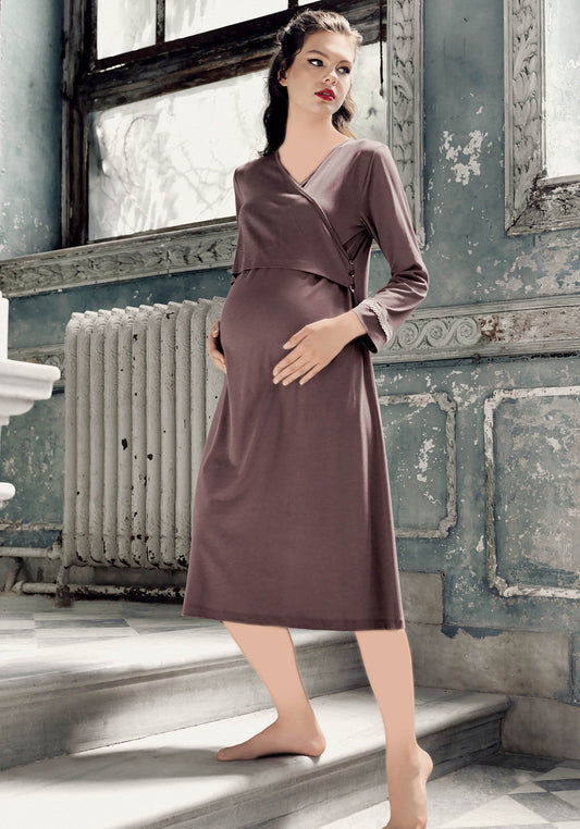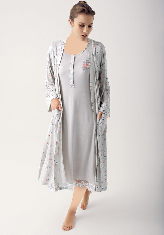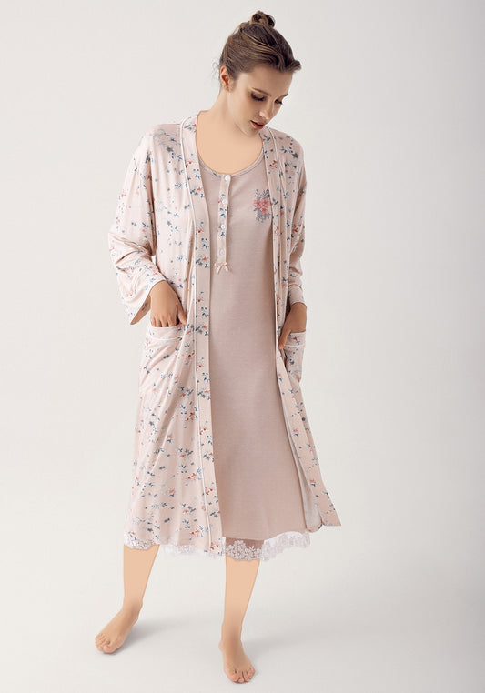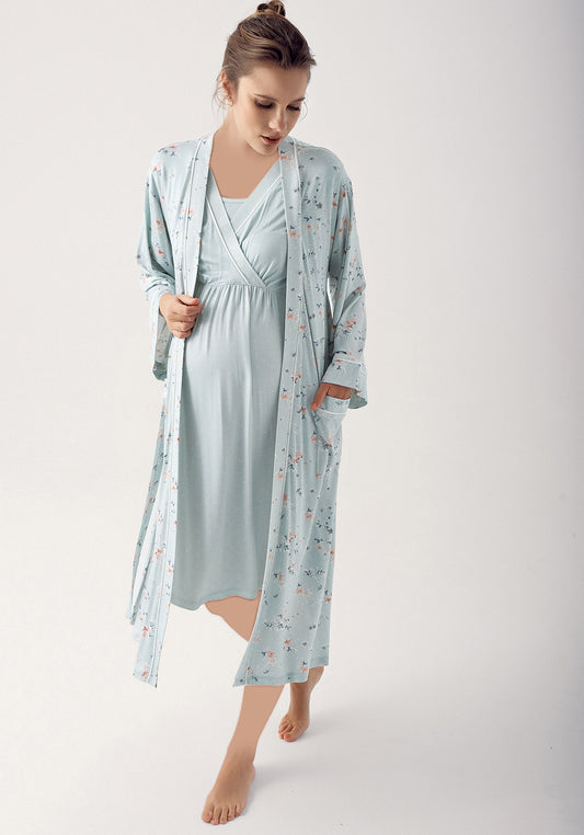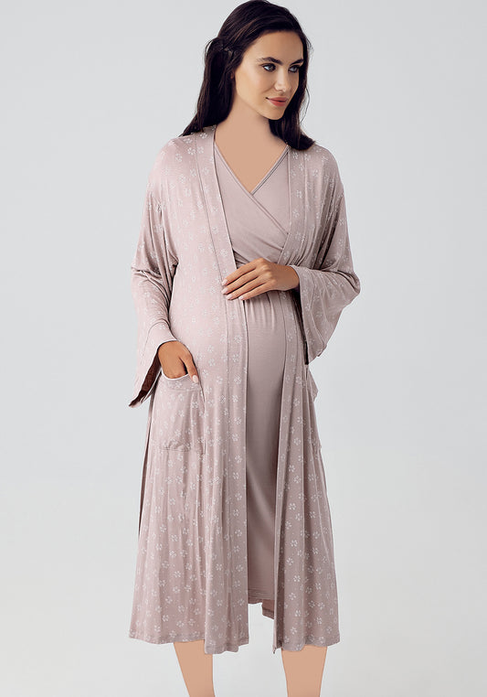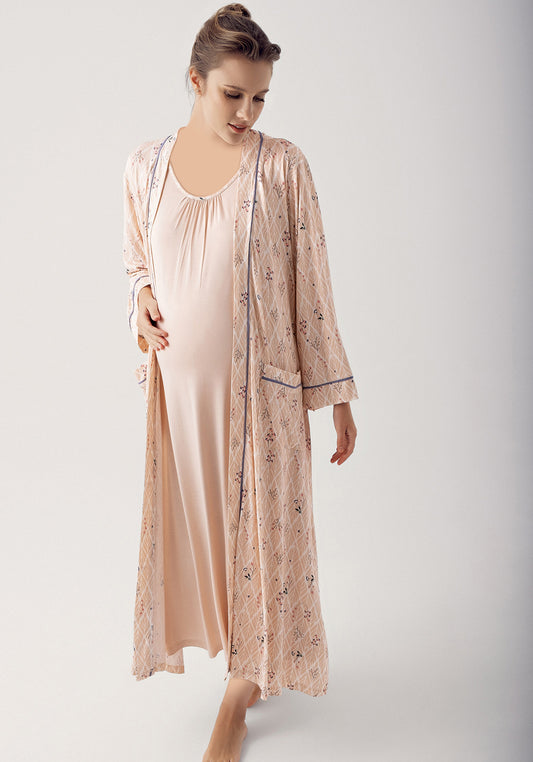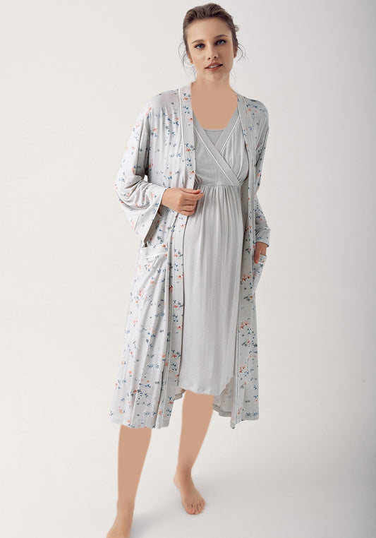 Maternal 2 Piece Cotton Robe And Nighty Set