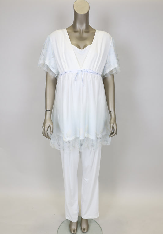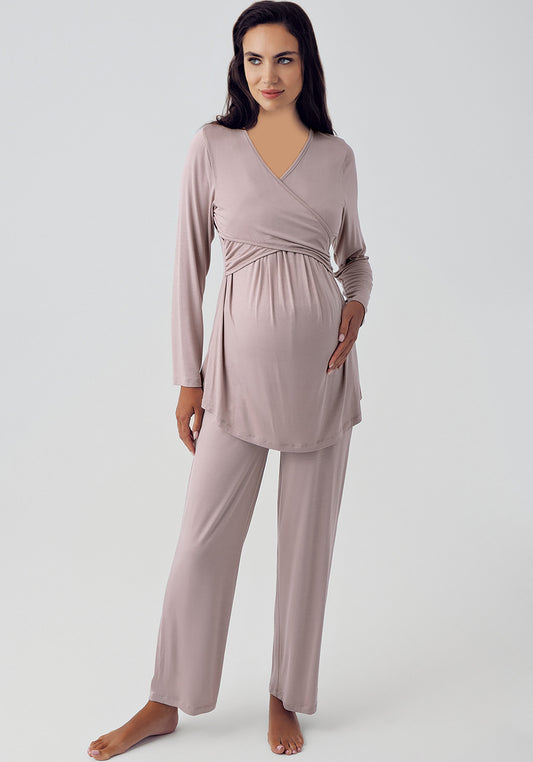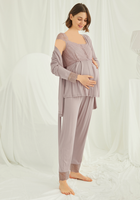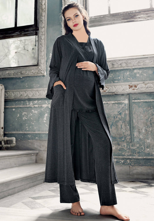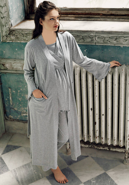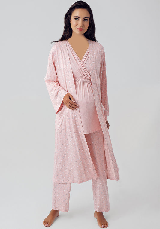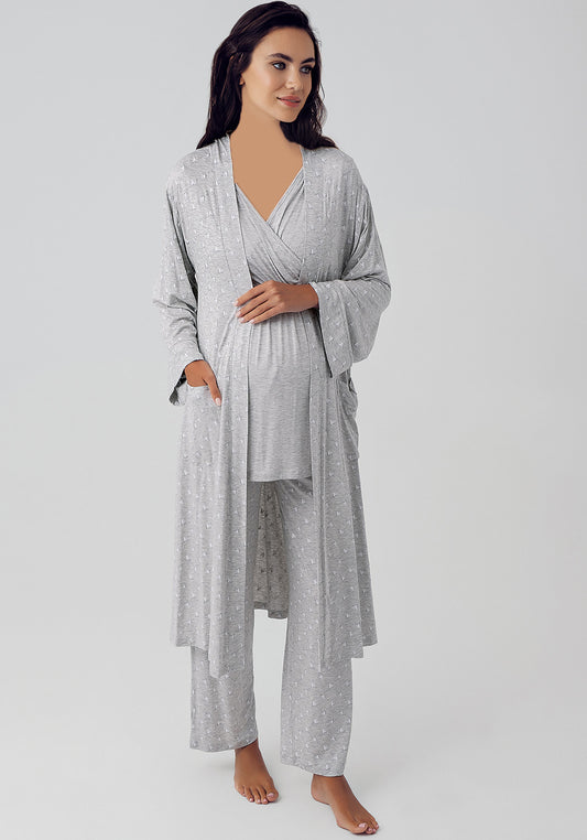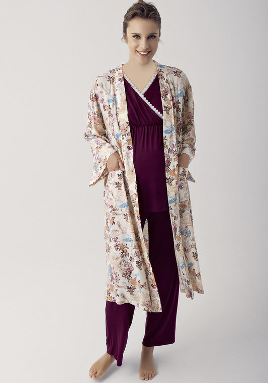 Maternal 3 Pieces Viscose Lycra Long Robe And Pajama Set