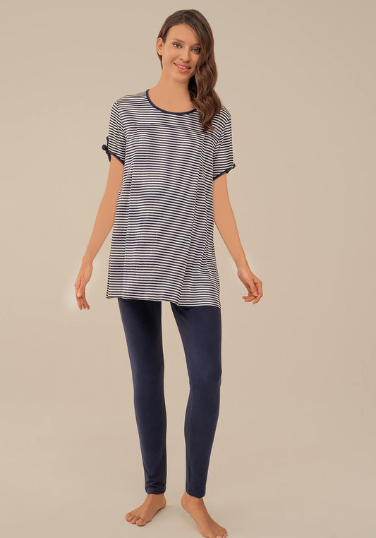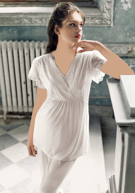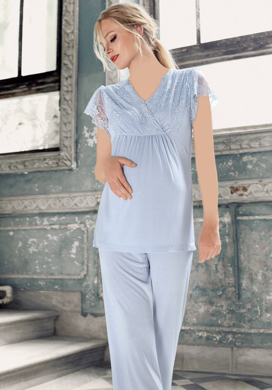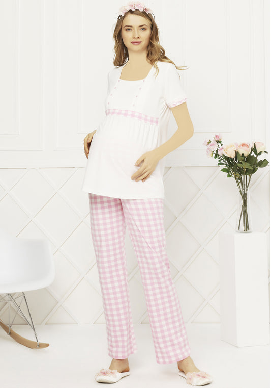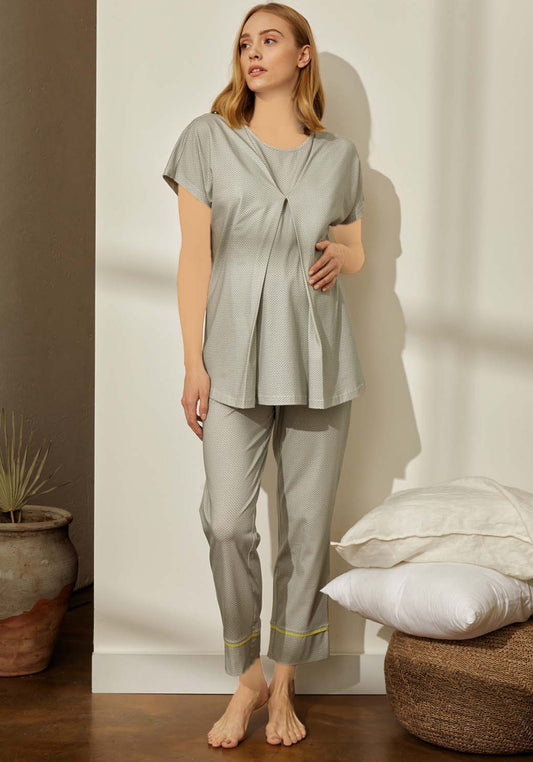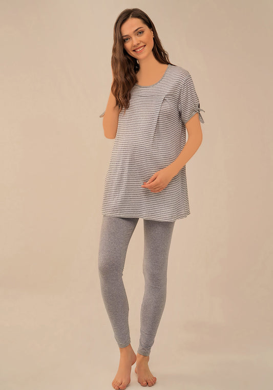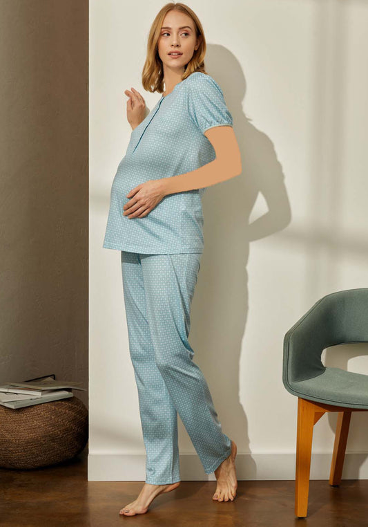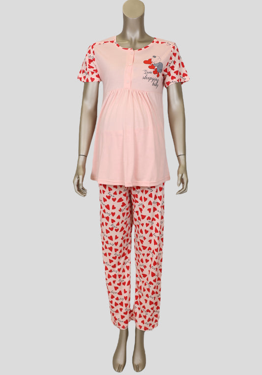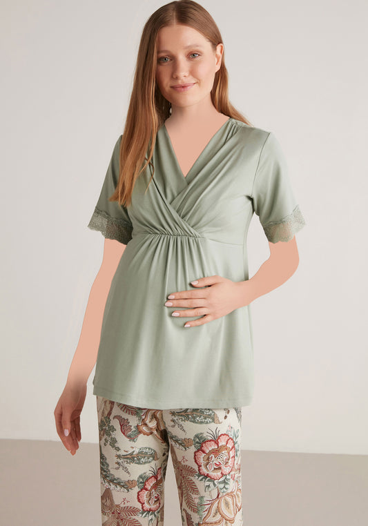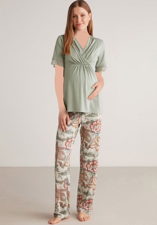 Maternal Short Sleeve Top And Printed Pant Pajamas