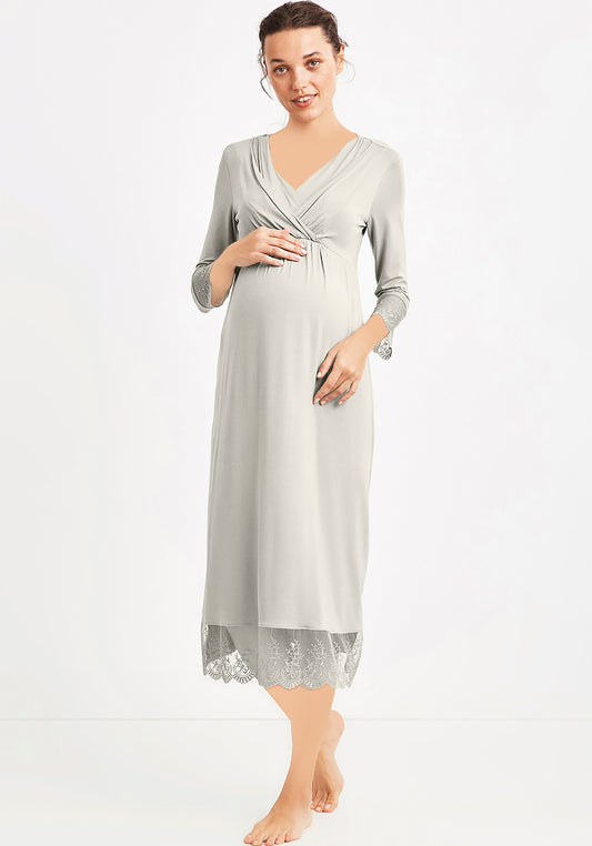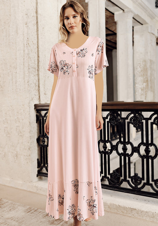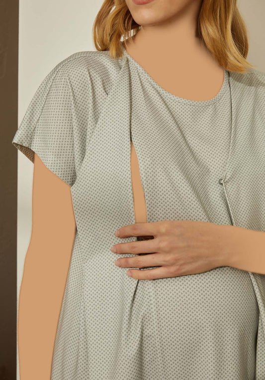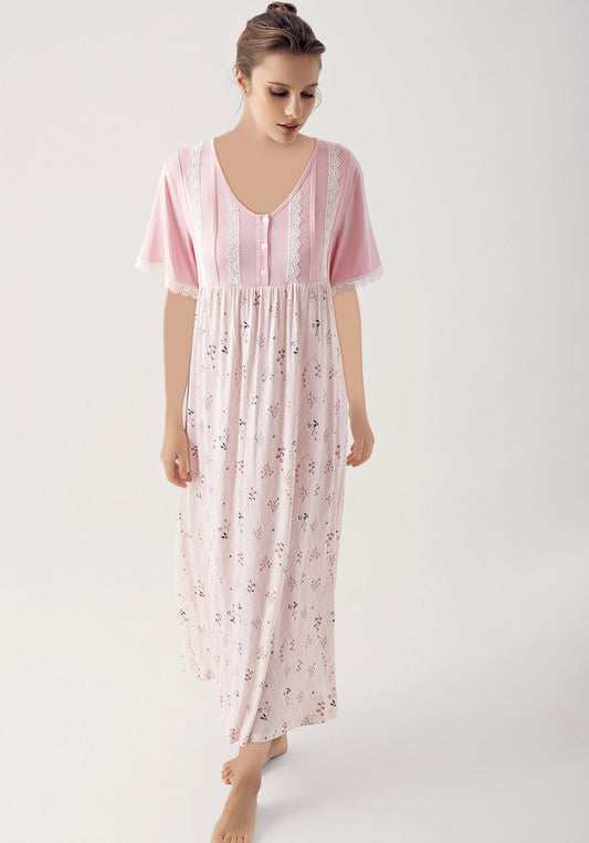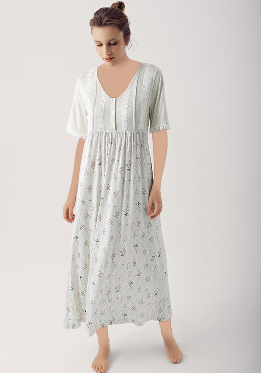 Cotton Maternal V-Neck Short Sleeve Nightgown
