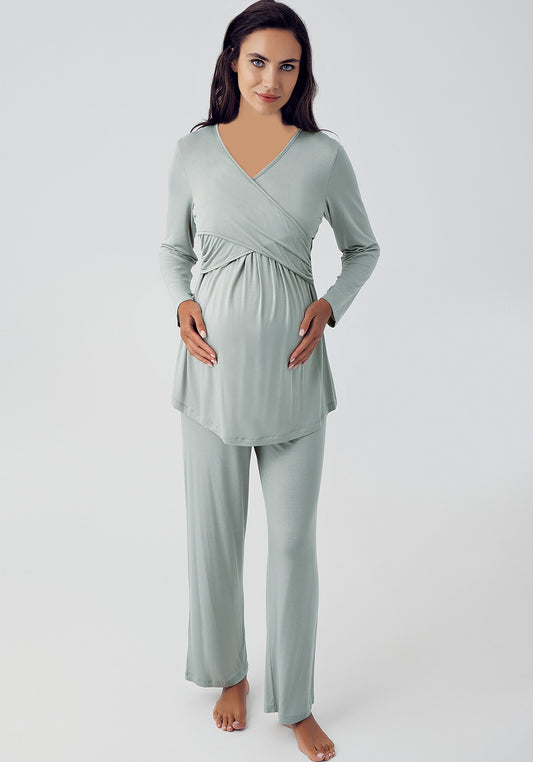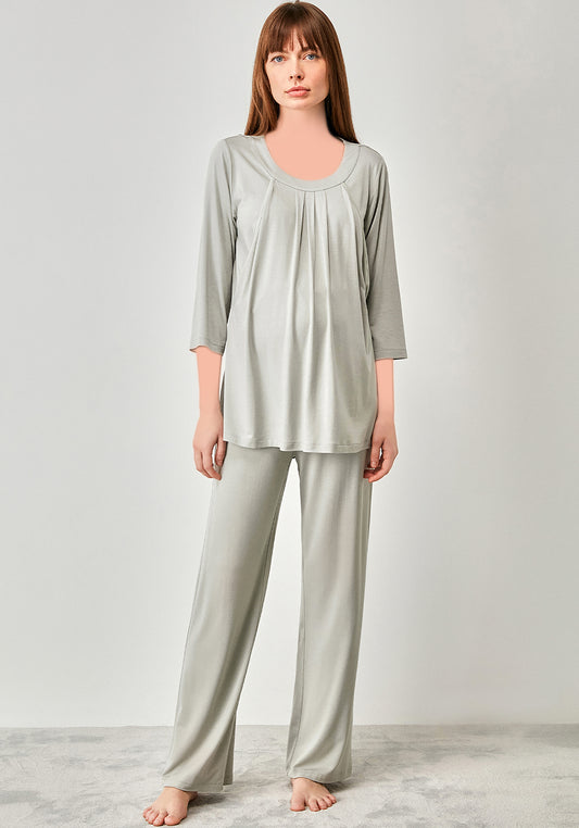 Maternal Viscose Lycra Button Top Long Sleeve Pajamas