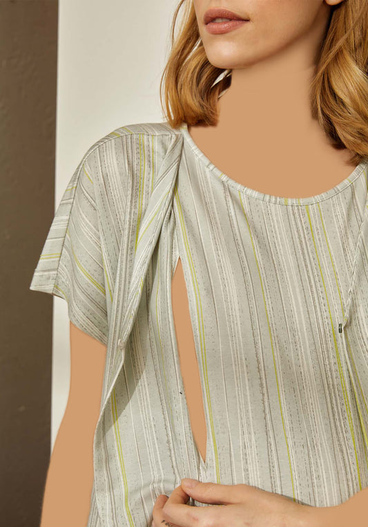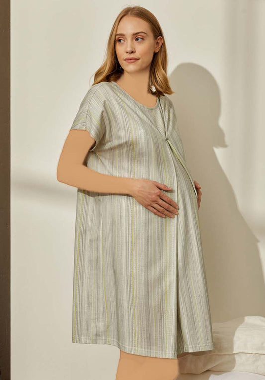 Maternal 2 Pieces Jakar Striped Robe And Nighty Set