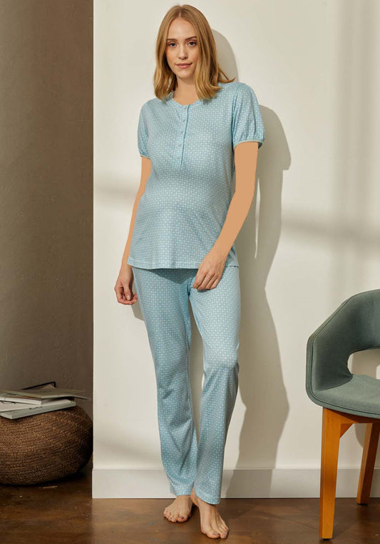Maternal Cotton Lycra Collar Button Long Sleeve Pajamas