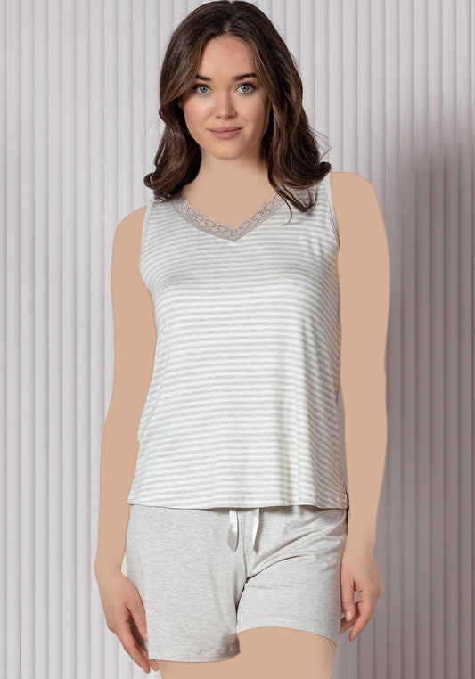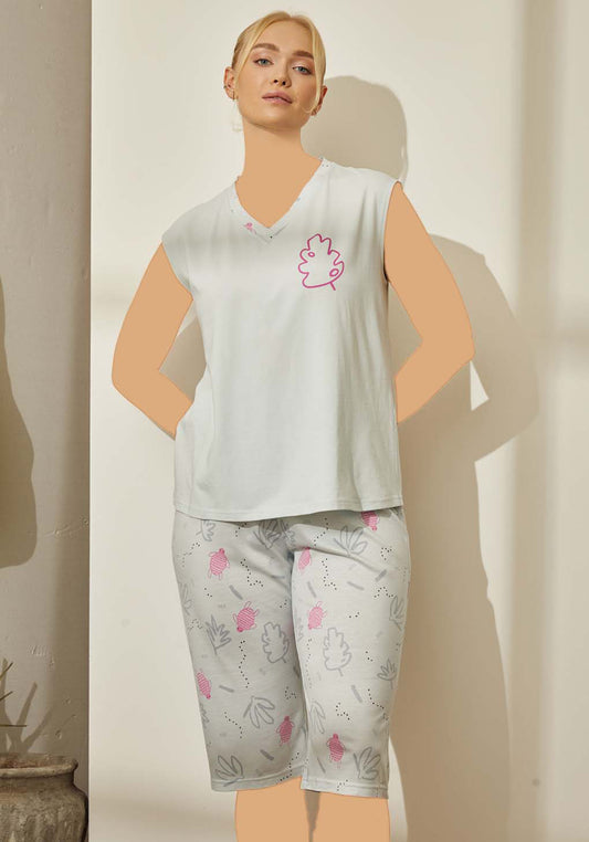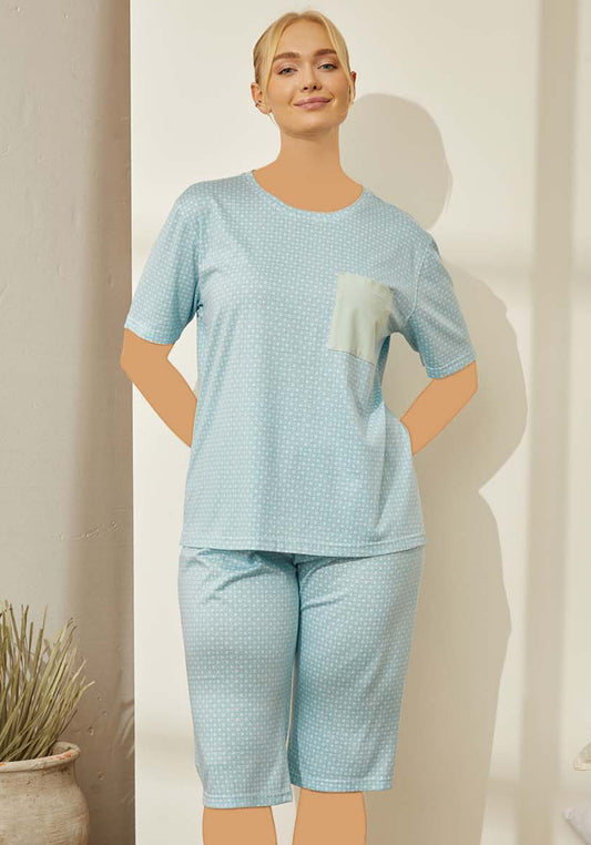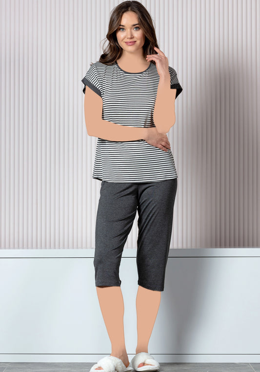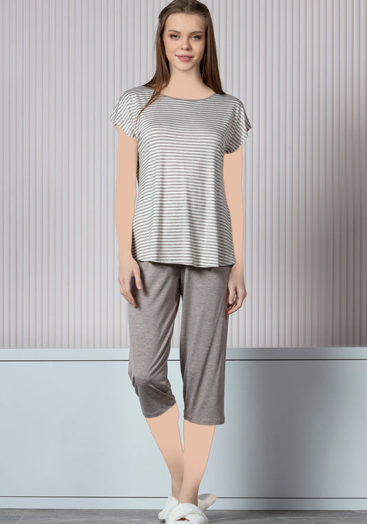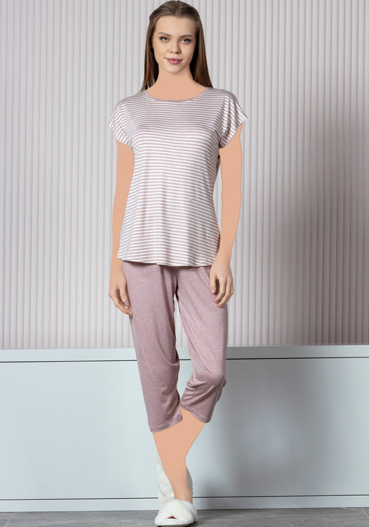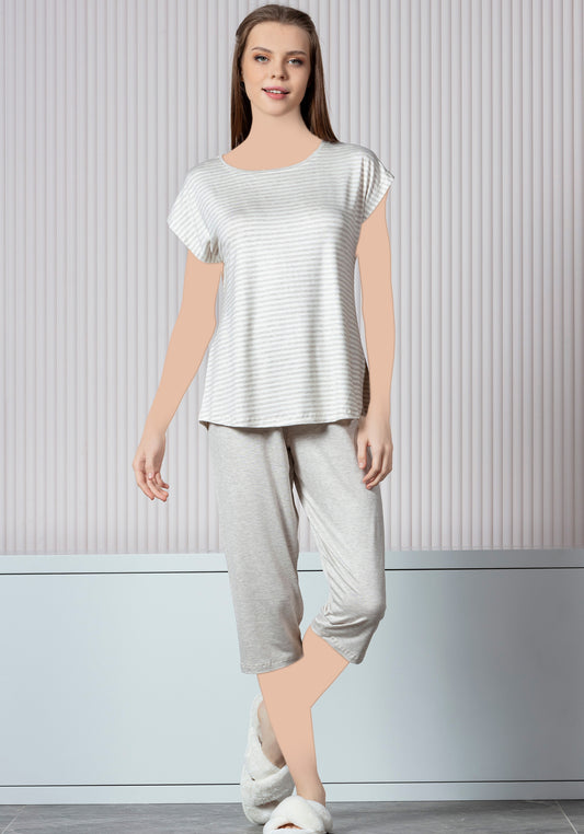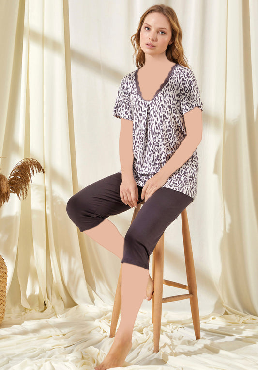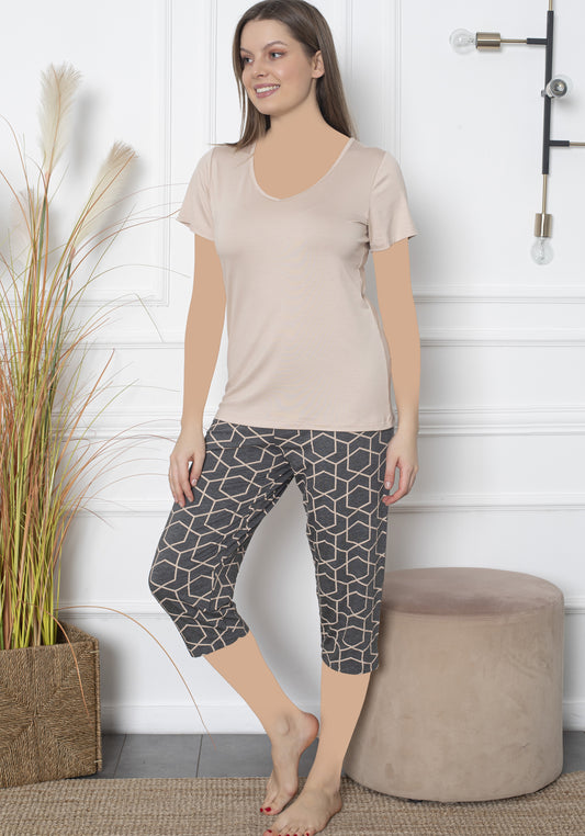 Modal Plus Size V-Neck Short Sleeve Top And Capri Set