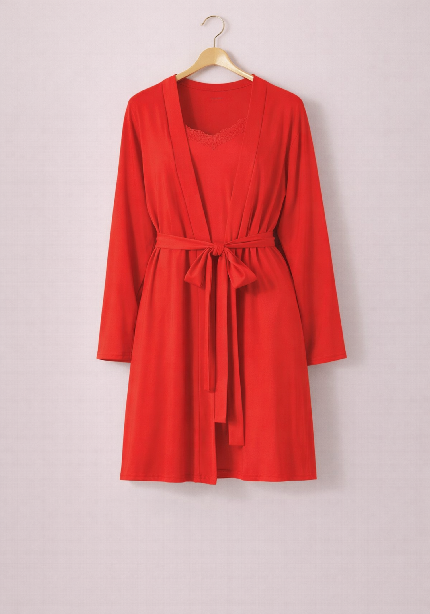 2Pcs Set: Shoulder Strap Nighty And Short Robe (100% Vis)