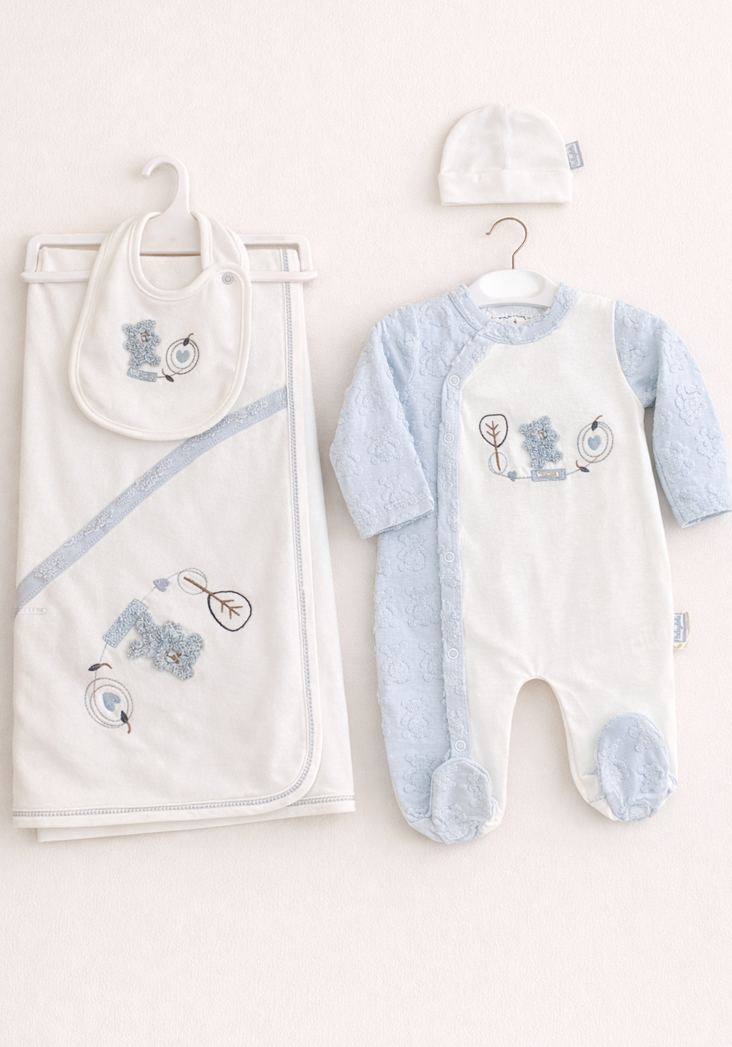 Baby Set Of 4: Romper, Cap, Banner, Blanket