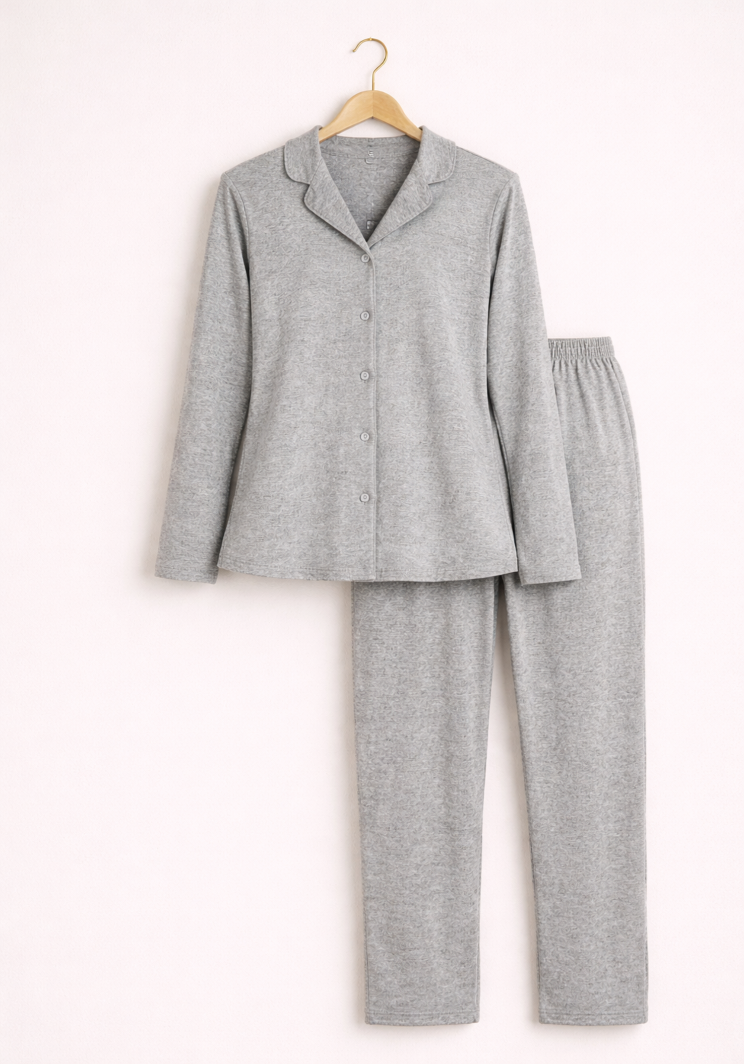 Collar Button Long Sleeve Pajamas (Vis Pes Els)