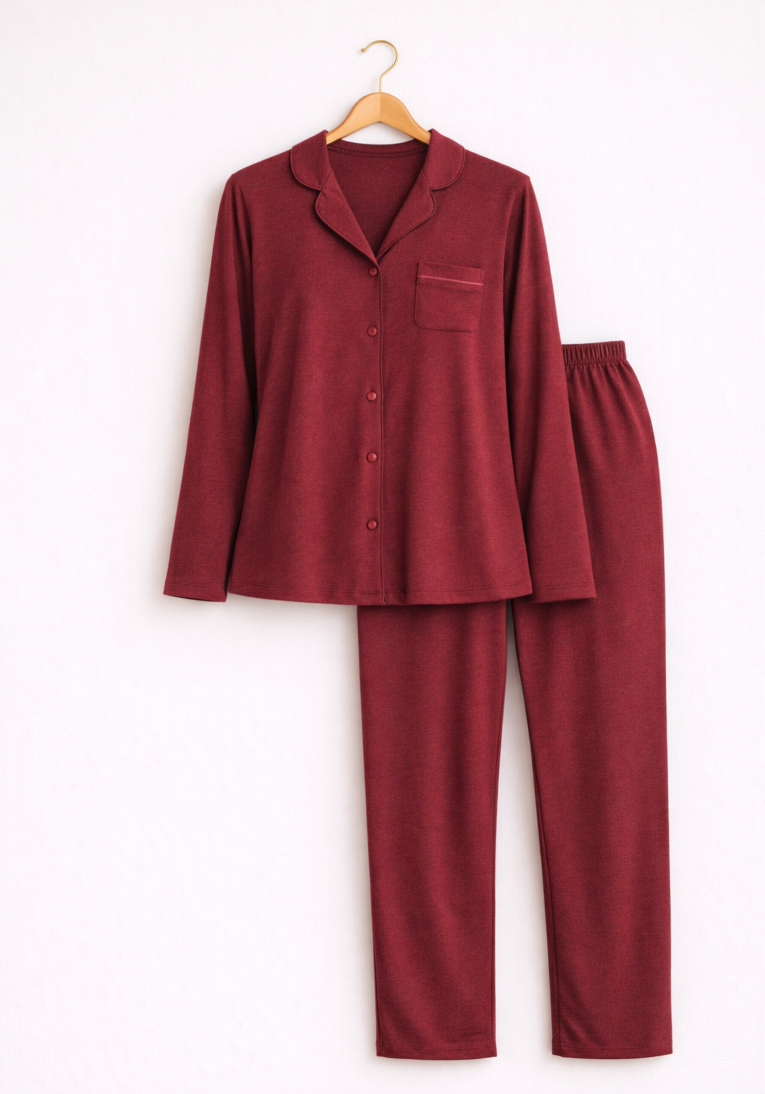 Collar Button Long Sleeve Pajamas (Vis Pes Els)