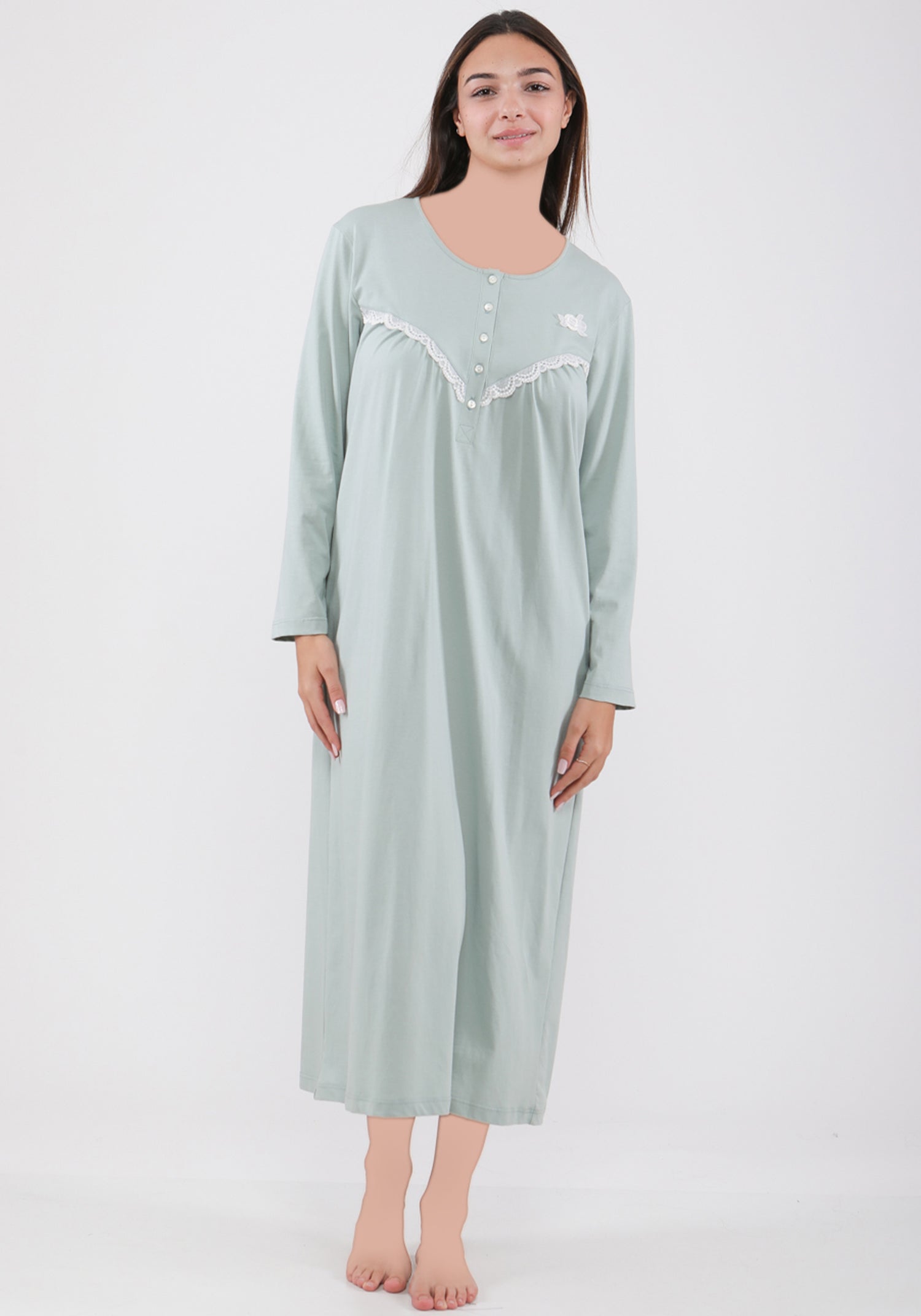 PLUS 100% Cotton Plus Size Long Sleeve Long Nighty