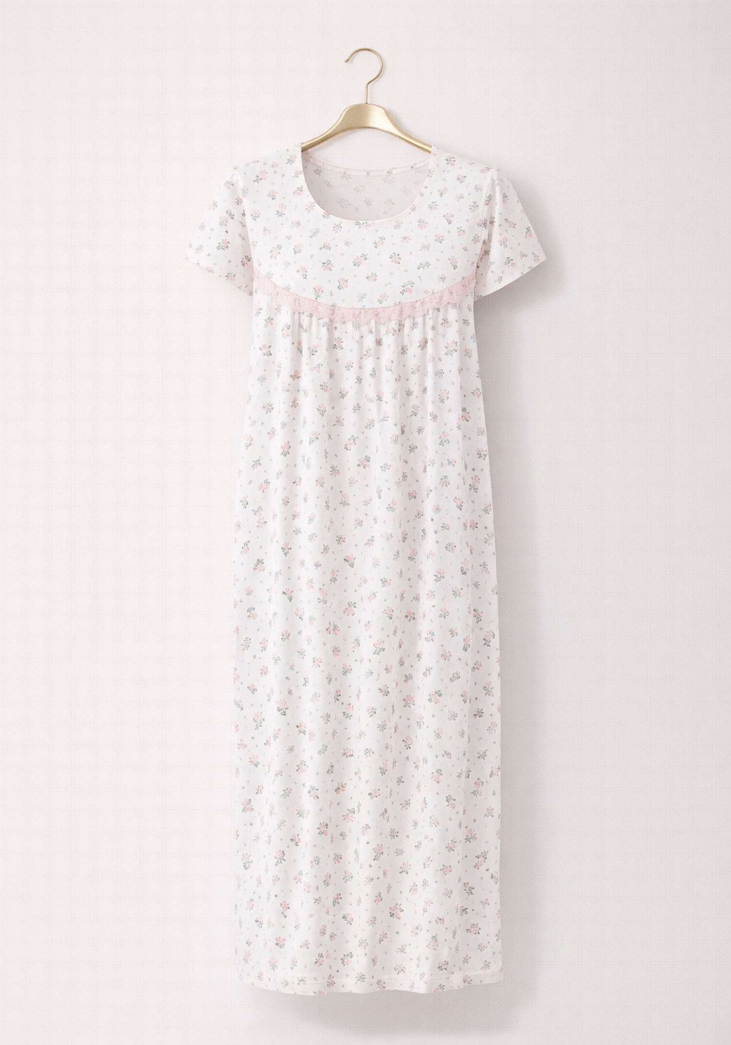 Plus Size Cotton Short Sleeve Long Floral Print Nighty