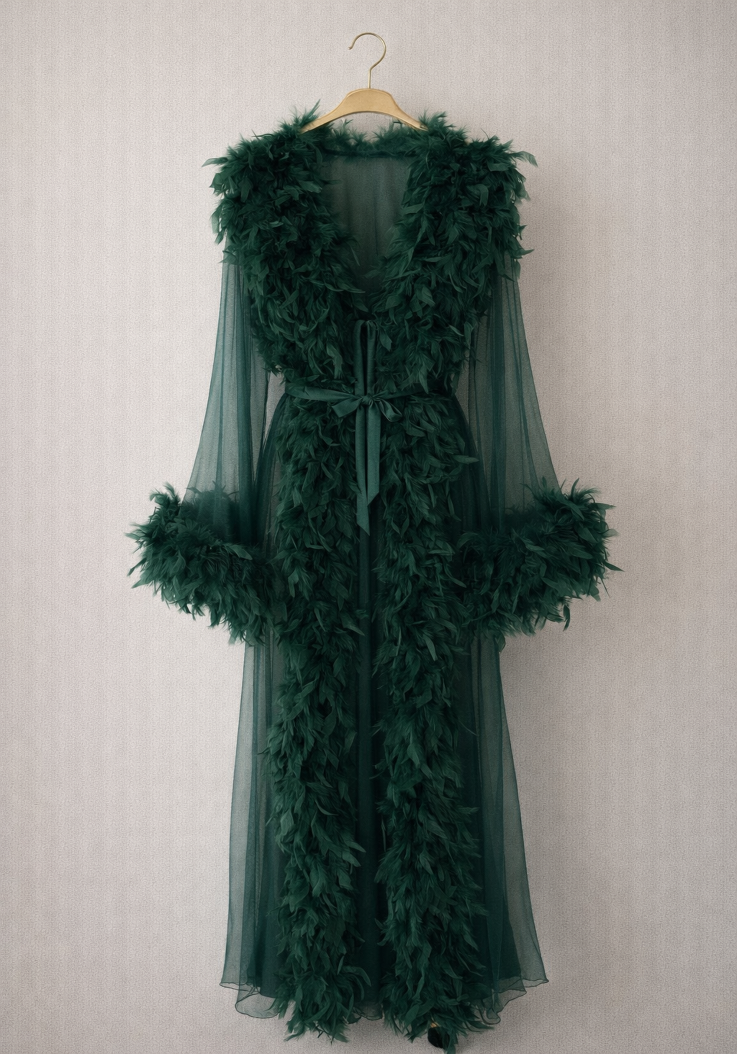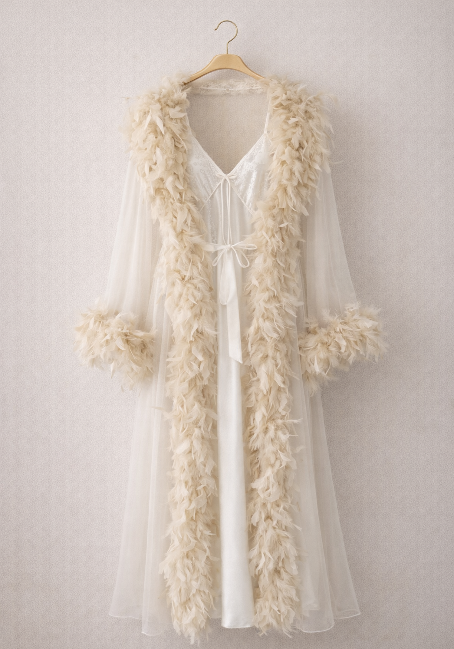 Toulle Satin Furr Long Robe Set